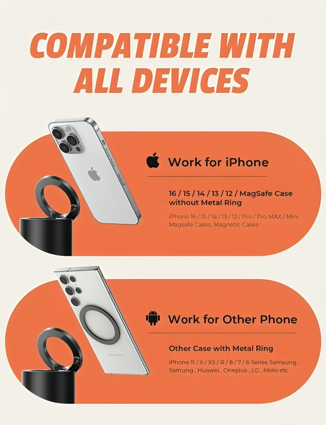 No iPhone? No problem! Our water bottle features a universal magnet that's compatible with Android and all other smartphones, ensuring convenient hands-free use for everyone.