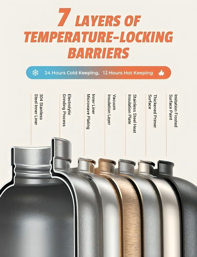 Crafted from premium stainless steel, this bottle keeps your drink at the ideal temperature for hours. It maintains cold beverages for up to 24 hours and hot drinks for up to 12 hours.